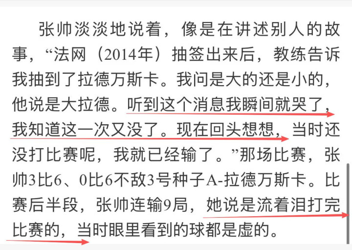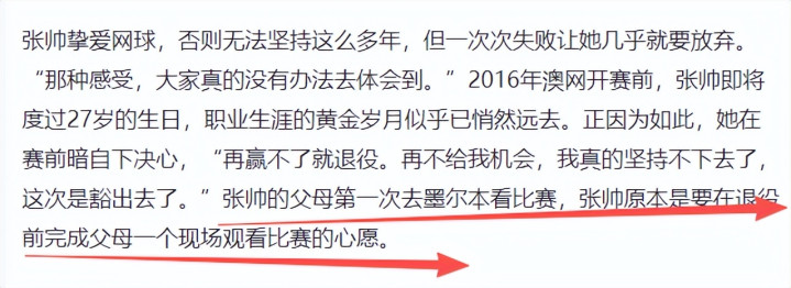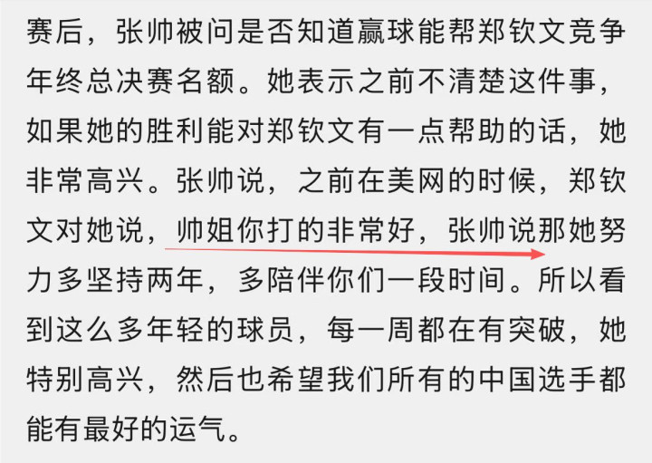 值得一提的是,在这段黑暗的时光中,郑钦文的鼓励让张帅再次选择咬牙前行。