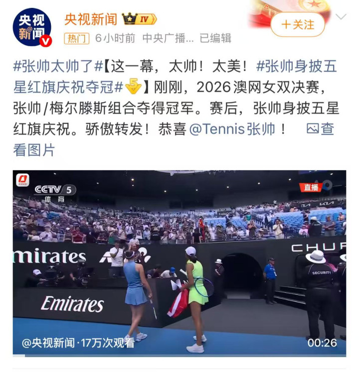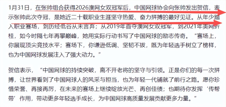 当这个喜讯传来,中国网球协会第一时间发文祝贺: