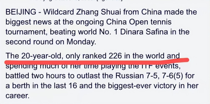 跨赛季的20余场连败让张帅创造了WTA历史上最长连败纪录。